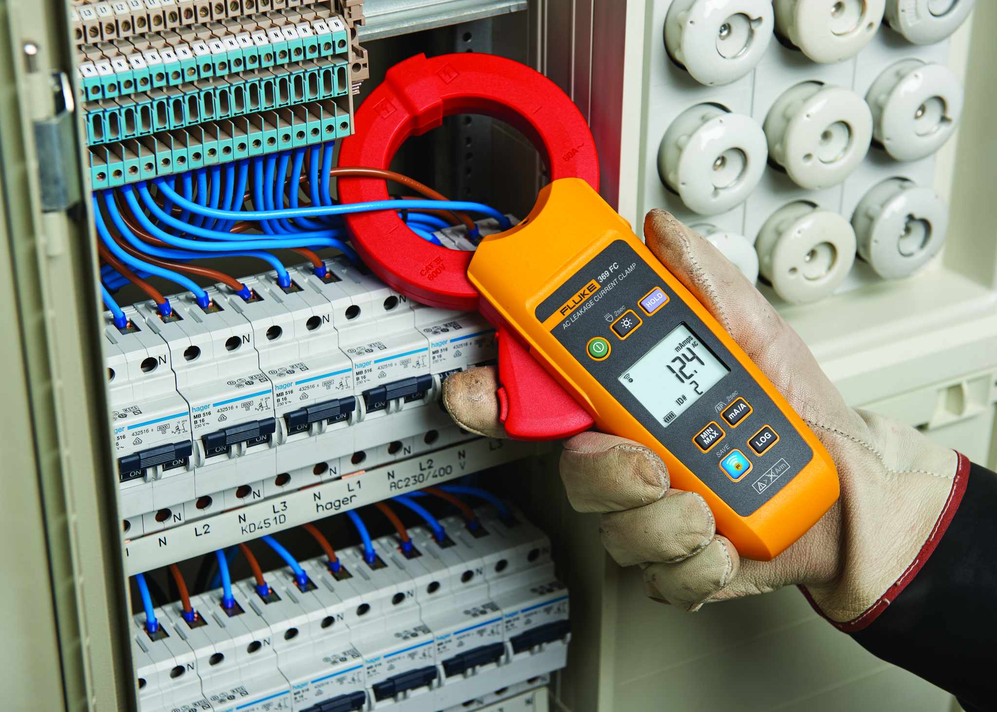 Características: Mordaza extragrande de 61mm, resolución 1 μA, luz LED, Fluke Connect.Incluye: Pinza de fugas 369 FC, Estuche, Baterías.