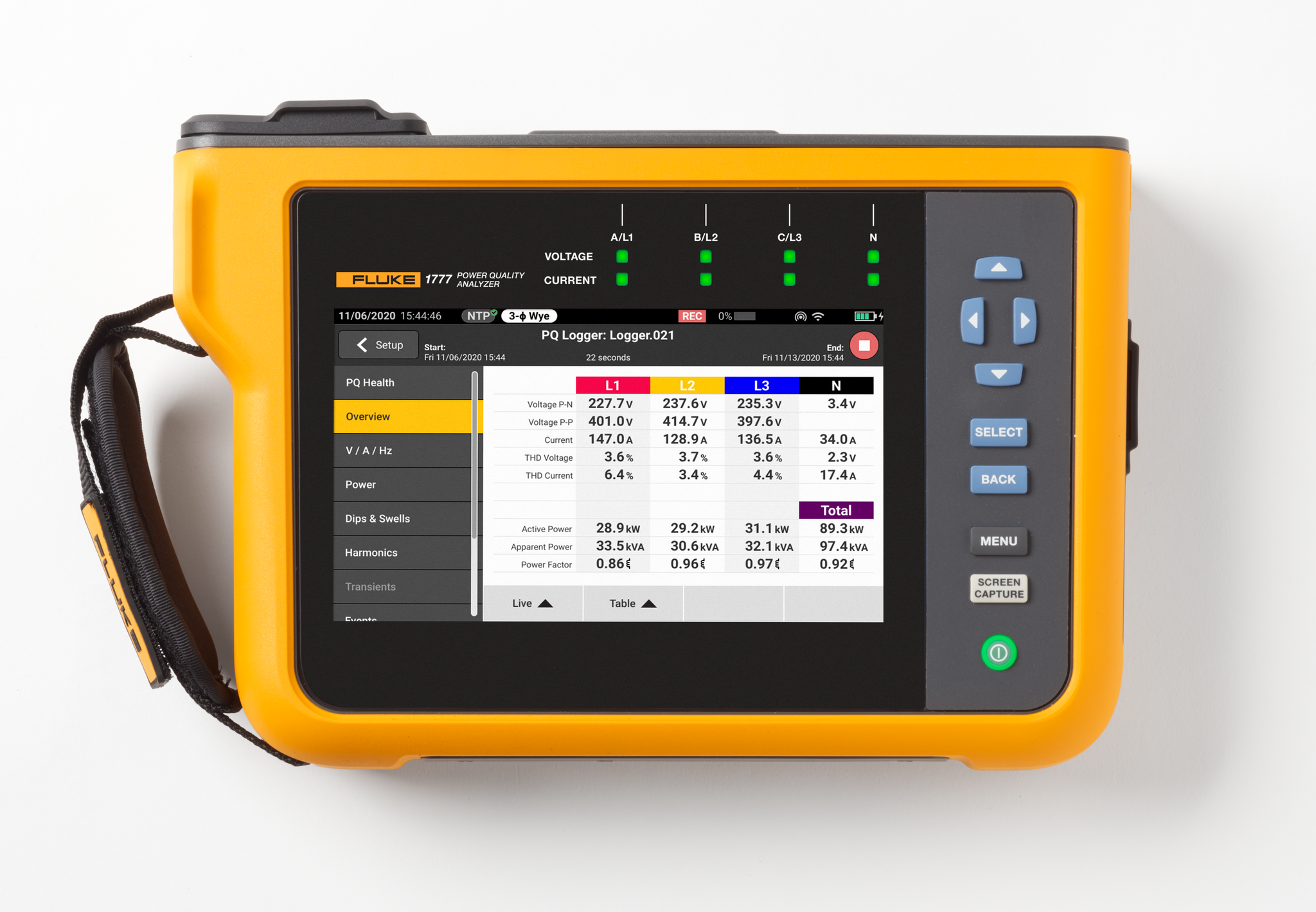 Características: Captura ultra rápida de transitorios, muestreo brutal de 20 MHz.Incluye: Analizador 1777, Sondas iFlex 1500A, Cables tensión, Módulo Wi-Fi, Estuche rígido con ruedas.