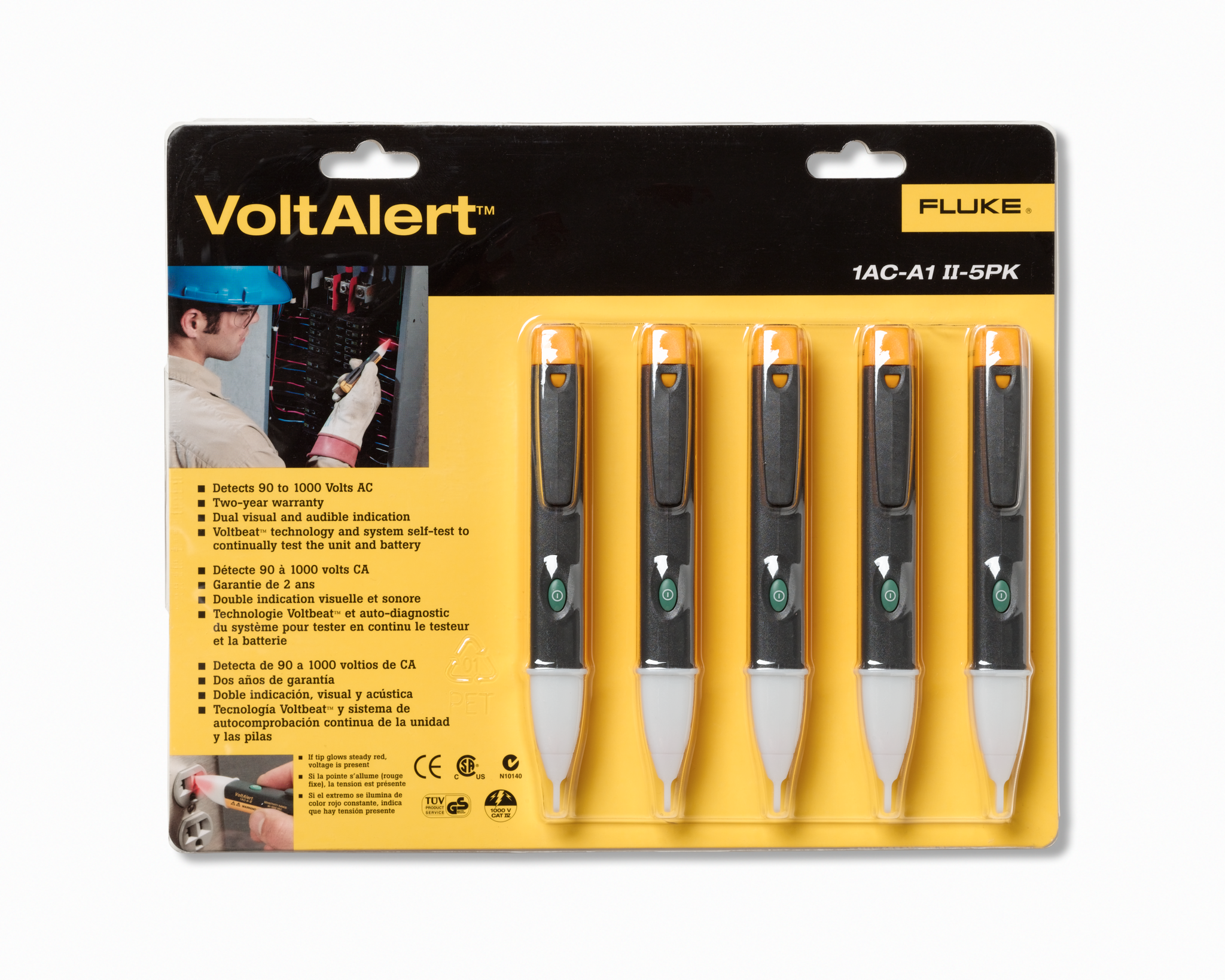 Características: Pack económico de 5 unidades. Voltbeat, luz y sonido de confirmación, CAT IV 1000 V.Incluye: 5 detectores de tensión Fluke 1AC.